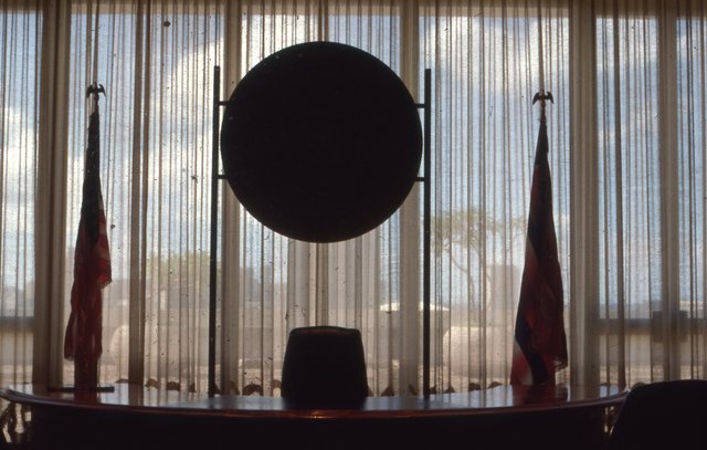 I'm not really sure about the third photo. It shows a desk and a chair and the round shield above the chair looks like it could be a seal...like a state seal or something. Maybe this is some kind of government office...Senator or Governor or something.
