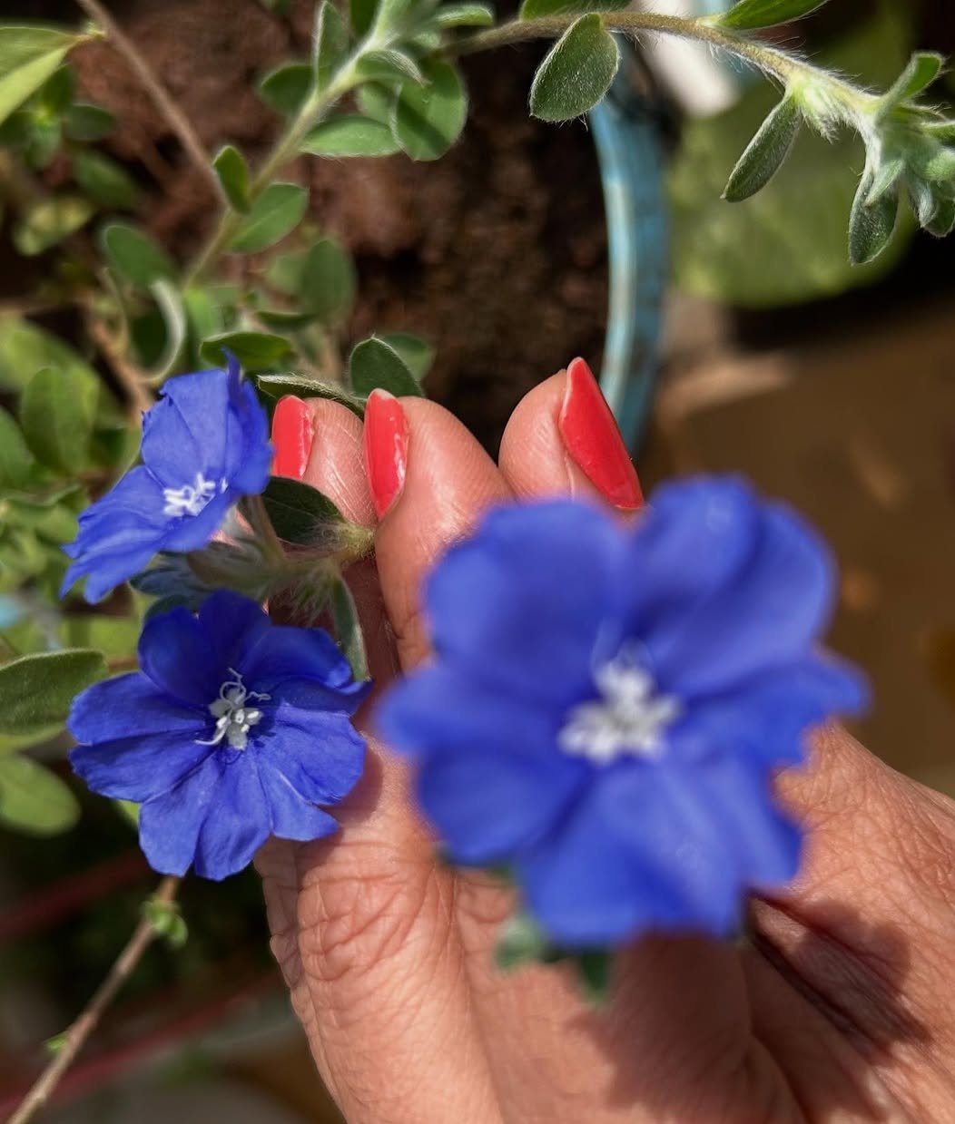 Flowers and Blooming The shaggy dwarf morning-glory produces delicate, funnel-shaped flowers that open to reveal a stunning shade of sky blue to violet-blue with a yellow or white throat. Each flower is relatively small—typically about an inch across—but when many bloom together, they create a dazzling carpet of blue. Like other morning-glories, the blooms usually open in the morning and may close by the afternoon, although this depends on temperature and moisture conditions. The flowering season is fairly long, often extending from spring through summer and sometimes into early autumn, depending on the climate.