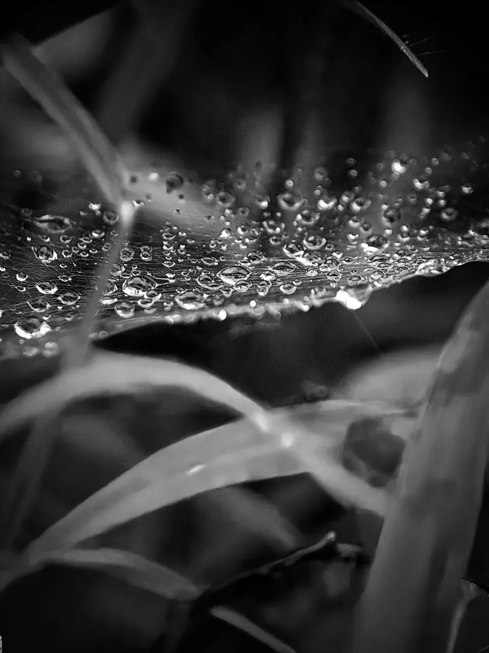 I accidentally noticed dew on a spider web, and I also noticed a spider beneath the dew wetting the web.