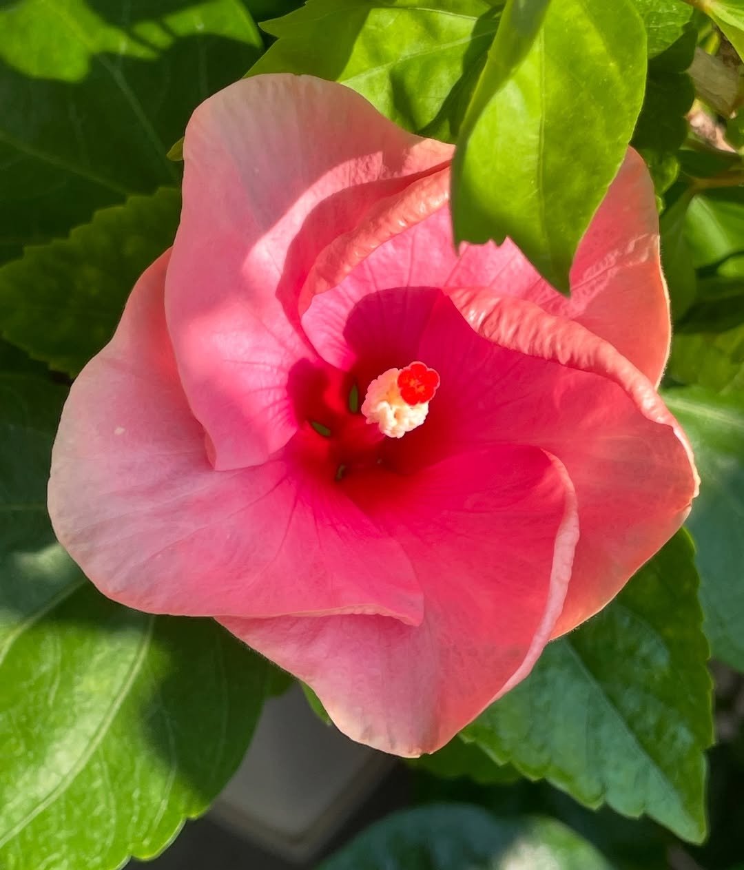 The common hibiscus is a perennial shrub that can grow between 4 to 10 feet in height, depending on its environment and care. It has glossy, dark green leaves that form a dense canopy, making it not only attractive but also useful for hedging. The flowers are the most striking feature: large, trumpet-shaped blooms measuring 4–6 inches across, often in vivid shades of red, pink, orange, yellow, or white. The petals are delicate, with a silky texture, and the prominent central staminal column adds to its exotic charm. Unlike some plants, hibiscus flowers bloom for only a single day, but the shrub produces them in abundance, ensuring that the plant remains in bloom almost year-round in warm climates.