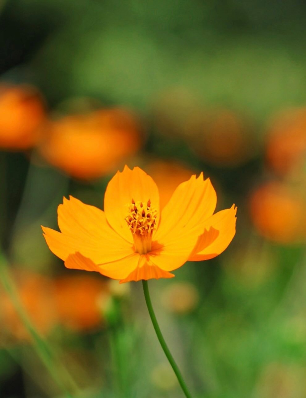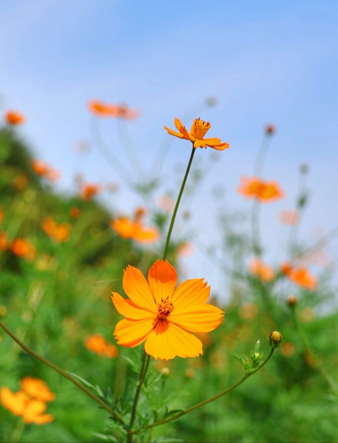 Sulfur cosmos is a bright and charming flowering plant that belongs to the Asteraceae family native to Mexico Central America and northern South America but now widely naturalized in many parts of the world due to its adaptability and ornamental appeal it is a fast growing annual that is loved by gardeners for its profusion of daisy like blooms which come in vibrant shades of golden yellow orange and fiery red the plant is usually 1 to 2 meters tall with slender branched stems and delicate feathery leaves that give it a graceful airy appearance the flowers are simple yet striking composed of eight petals surrounding a yellow central disc which attracts a variety of pollinators such as bees butterflies.