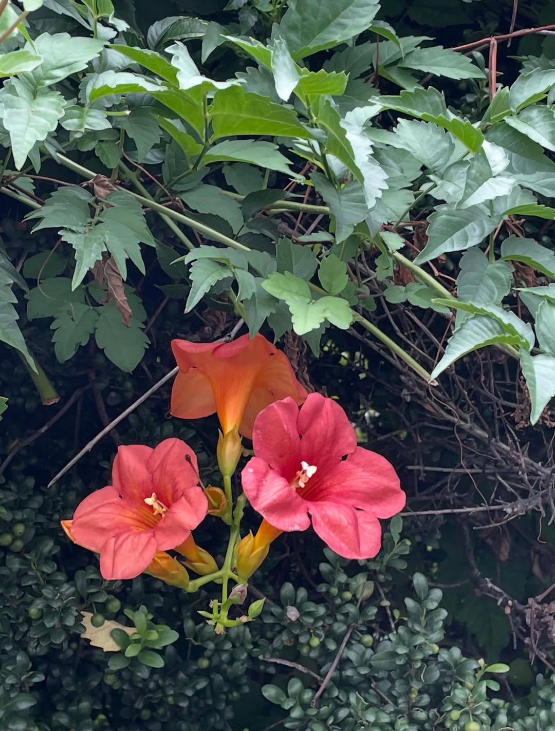 Trumpet vine flower it is admired for its large trumpet-shaped flowers which are usually bright orange to red and bloom profusely during summer and early autumn the flowers are tubular and flared at the edges ranging from 7 to 10 centimeters in length and are highly attractive to hummingbirds bees and butterflies making the plant an excellent choice for pollinator-friendly gardens the vine itself is woody and fast-growing capable of climbing to heights of 10 to 15 meters by means of aerial rootlets that cling to walls fences trees and trellises its pinnate leaves are composed of 7 to 11 serrated leaflets creating a lush green backdrop for the vibrant blooms trumpet vine thrives in full sun to partial shade and prefers well-drained fertile soil though.