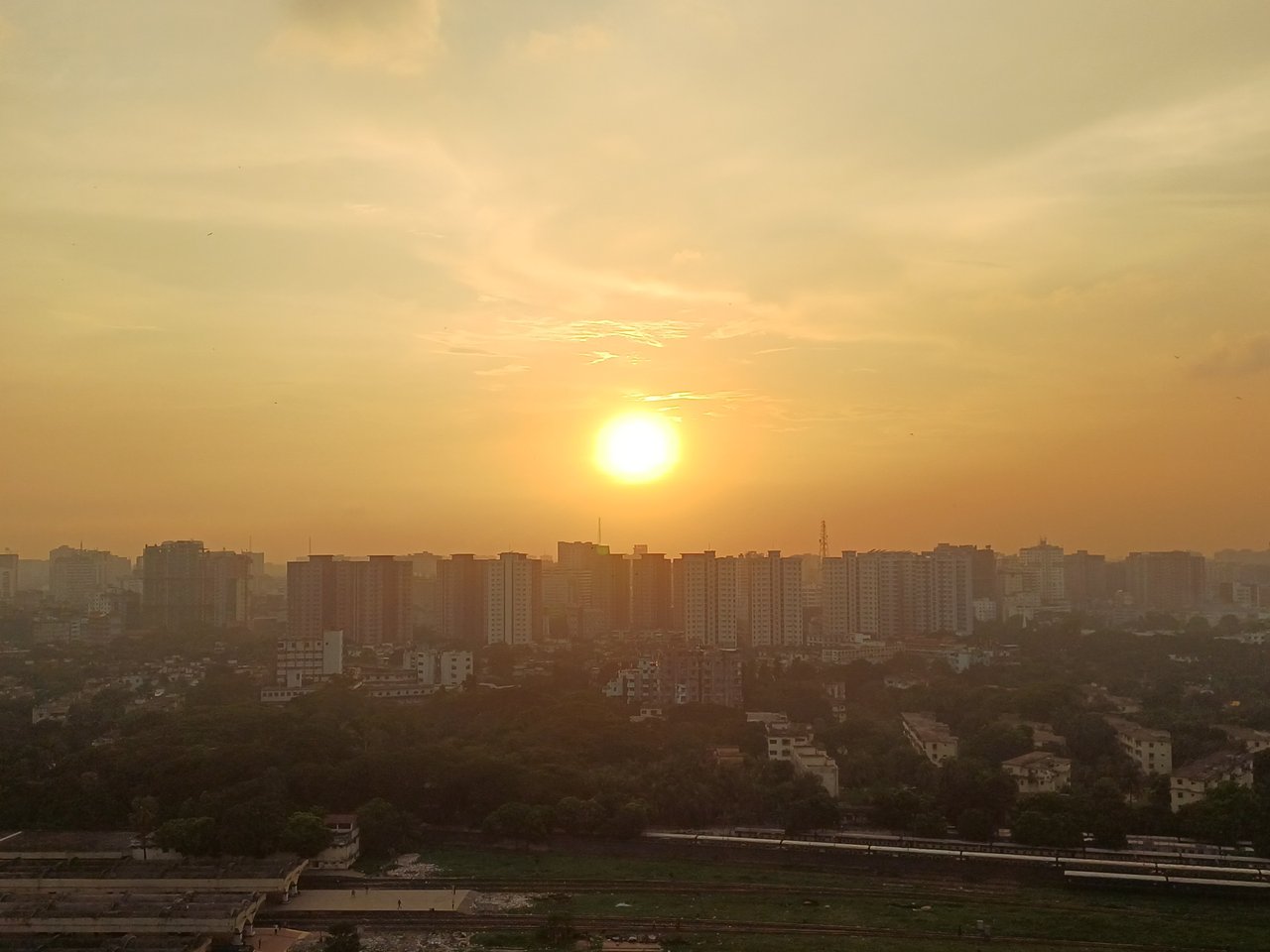 Description: Golden light spilling over the city, turning buildings and trees into soft silhouettes — a calm end to a long day.