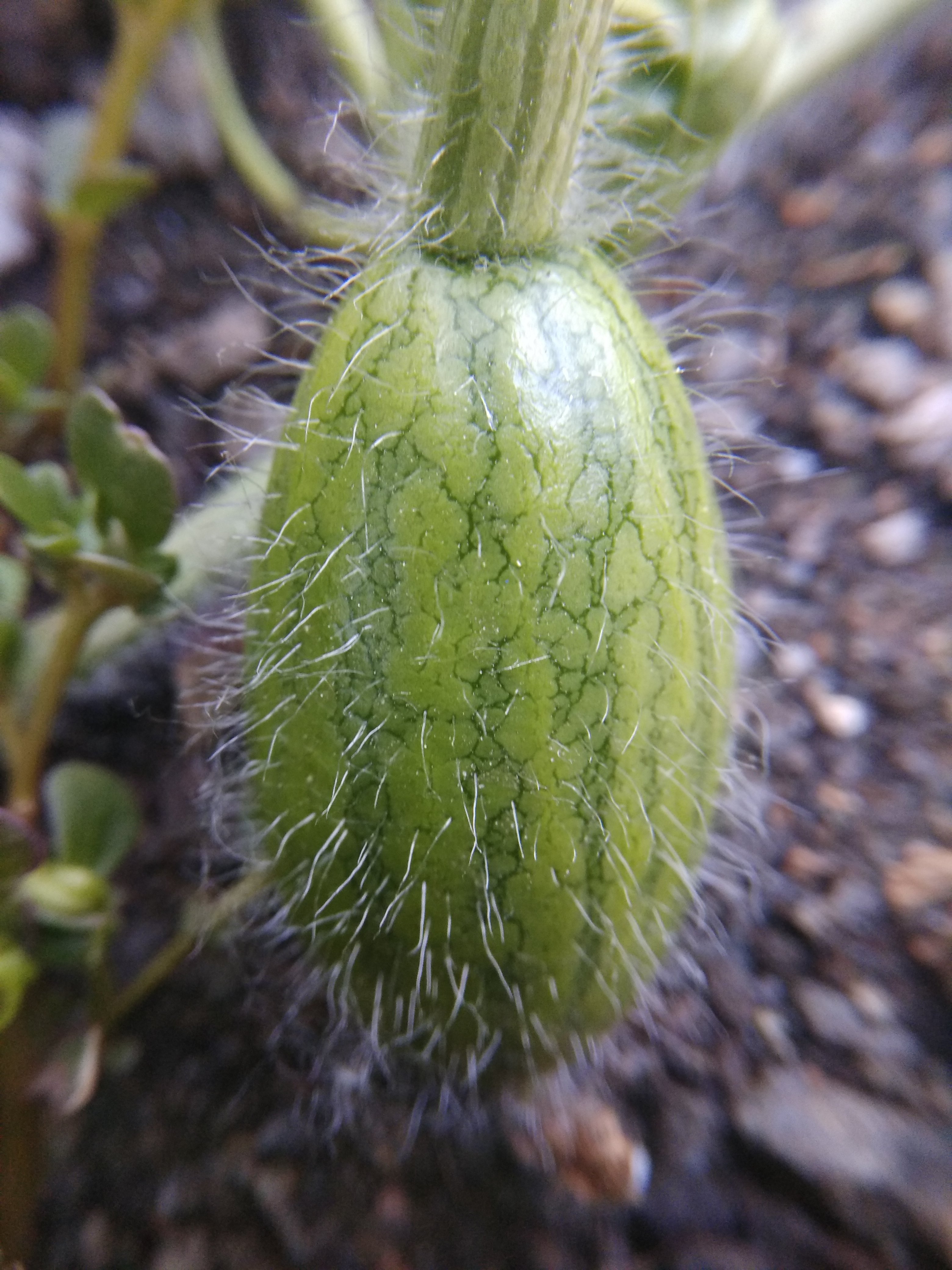 Sore sore melihat tanaman semangka (tak sengaja tumbuh) di depan rumah, ternyata sudah berbunga dan bahkan sudah ada buah yang masih mungil.
