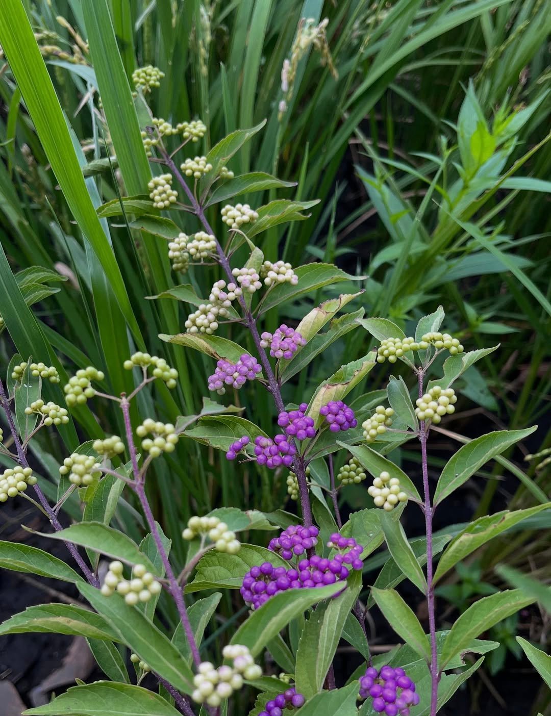 Japanese beautyberry is highly admired for its ornamental value especially due to its striking clusters of bright violet-purple berries that appear in autumn the plant is native to Japan Korea and China and has been widely cultivated in gardens around the world for its unique beauty and seasonal interest it typically grows to a height of 4 to 6 feet with a similar spread forming a rounded dense shape the leaves are simple ovate to elliptic in shape with serrated edges and appear opposite on the stems during spring and summer the foliage is a fresh green color which provides an elegant background for the small inconspicuous pink to lavender flowers.