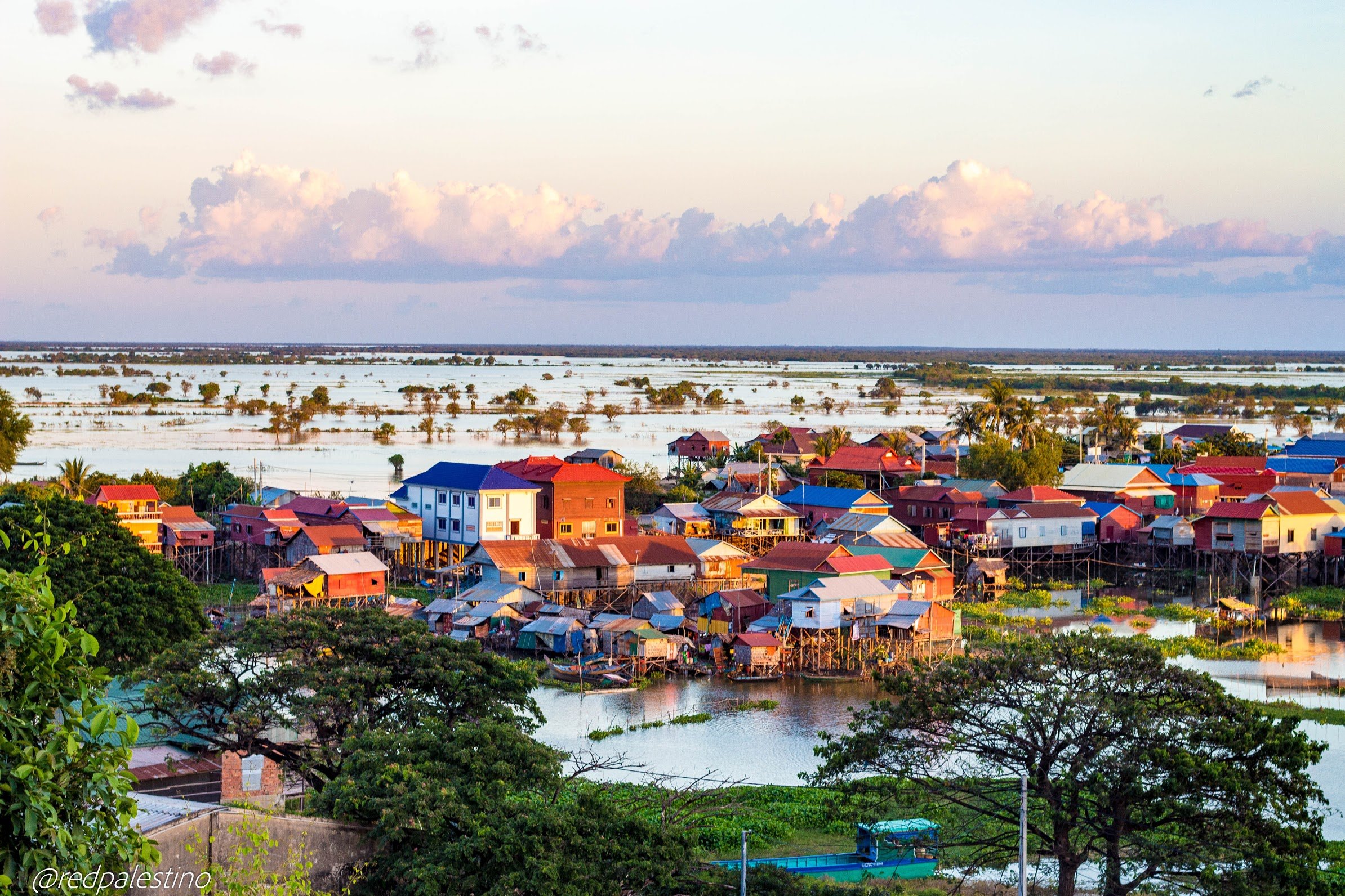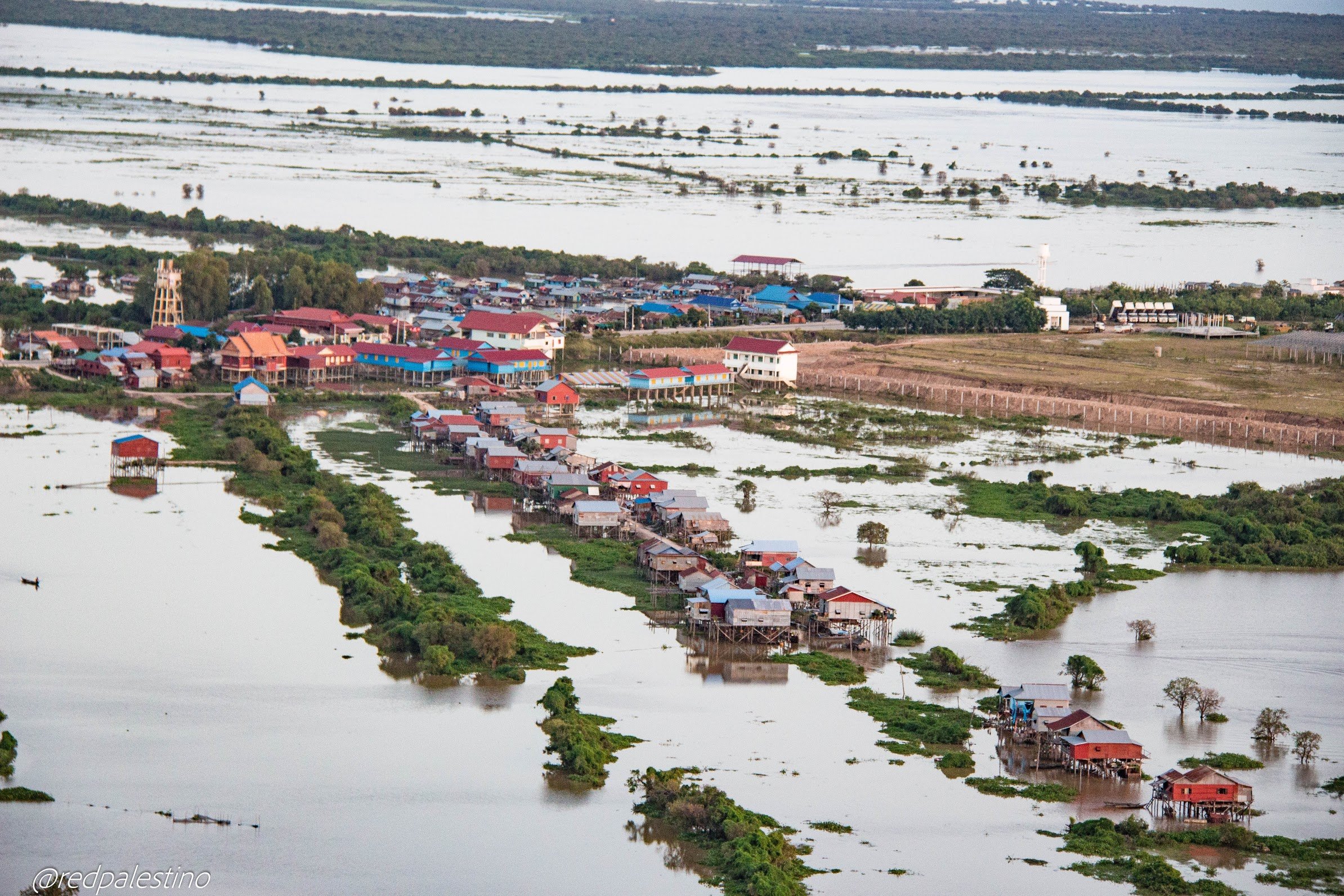 Die Kambodschaner profitieren von diesem Phänomen. Der Tonle Sap selbst ist Heimat von mehr als 3000 Menschen die auf schwimmenden Dörfern leben. Mir ist gelungen von einem nahegelegene Berg die Dörfer in erhöhter Lage zu fotografieren.
