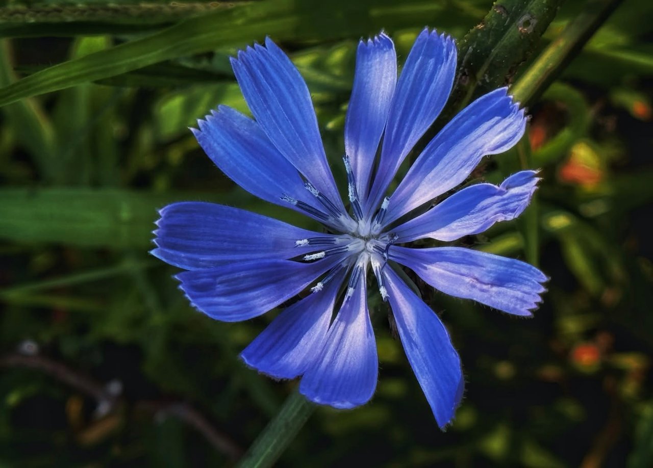 The Chicory flower (Cichorium intybus) is instantly recognizable for its delicate, daisy-like blossoms in shades of pale to vivid blue, sometimes tinged with lavender or white. The blooms open in the early morning sunlight and often close by afternoon, giving them a fleeting, almost dreamlike quality. Their color mirrors the clear sky, making them feel like little pieces of heaven scattered on the ground.