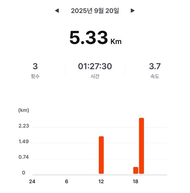 [M2E] 2025/09/19 오운완 5.33 km (일일 목표: 3 km)