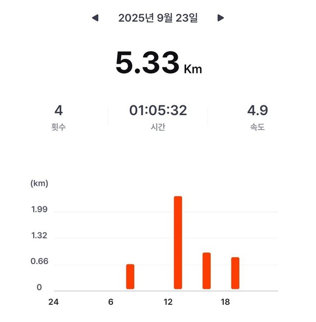 [M2E] 2025/09/23 오운완 5.33 km (일일 목표: 3 km)
