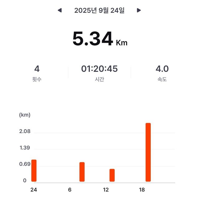 [M2E] 2025/09/24 오운완 5.34 km (일일 목표: 3 km)