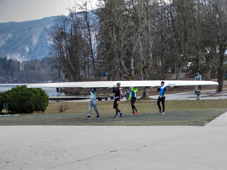gdzie mogę z bliska przyjrzeć się sportowej łodzi (wiedzieliście, że buty wioślarzy są na stałe przymocowane do belek w łodzi?) i być naocznym świadkiem treningu – w takich okolicznościach przyrody trening powinien być prawdziwą przyjemnością!