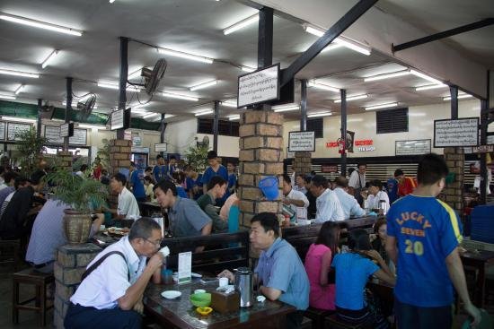 Rzuciliśmy okiem na masywny budynek byłego Sekretariatu, gdzie 19 lipca 1947 roku zastrzelony został ojciec birmańskiej niepodległości, generał Aung San. Następnie wycofaliśmy się do lokalnej herbaciarni, aby chociaż na chwilę uciec od parzącego słońca. Relatywnie przestrzenny, gorący i duszny pokój bez klimatyzacji był zagracony starymi, podniszczonymi stołami i małymi plastikowymi krzesełkami, które być może są wygodne dla dziecka lub birmańskiej dziewczyny, ale na pewno nie dla obcokrajowca. Zamówiliśmy dwa rodzaje herbaty, chińską i indyjską, znaną lokalnie oczywiście jako herbata birmańska. Herbata chińska była tak słaba, że prawie przezroczysta. Mocny smak herbaty birmańskiej był znośny z uwagi na dużą zawartość słodkiego skondensowanego mleka. Piliśmy herbatę, podjadając indyjski chleb nan i samosy, obserwując przy tym lokalne życie.