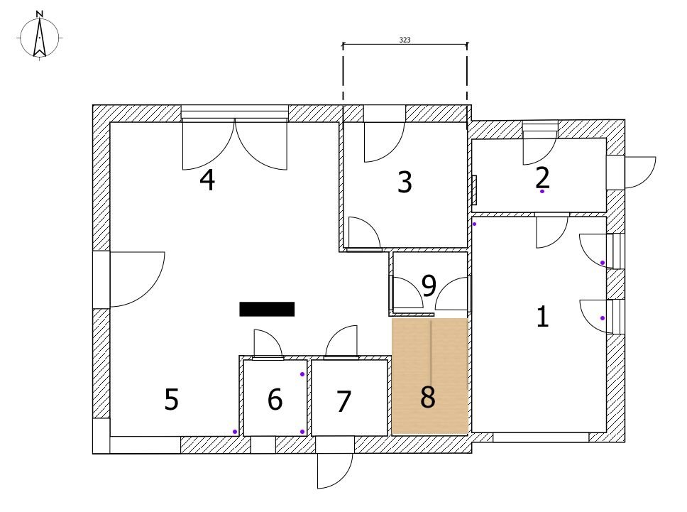 Poniżej rzut parteru z ponumerowanymi pomieszczeniami. Jako, że planuję na poddaszu wykonać drugą rozdzielnicę, skupie się aktualnie tylko na tej kondygnacji.