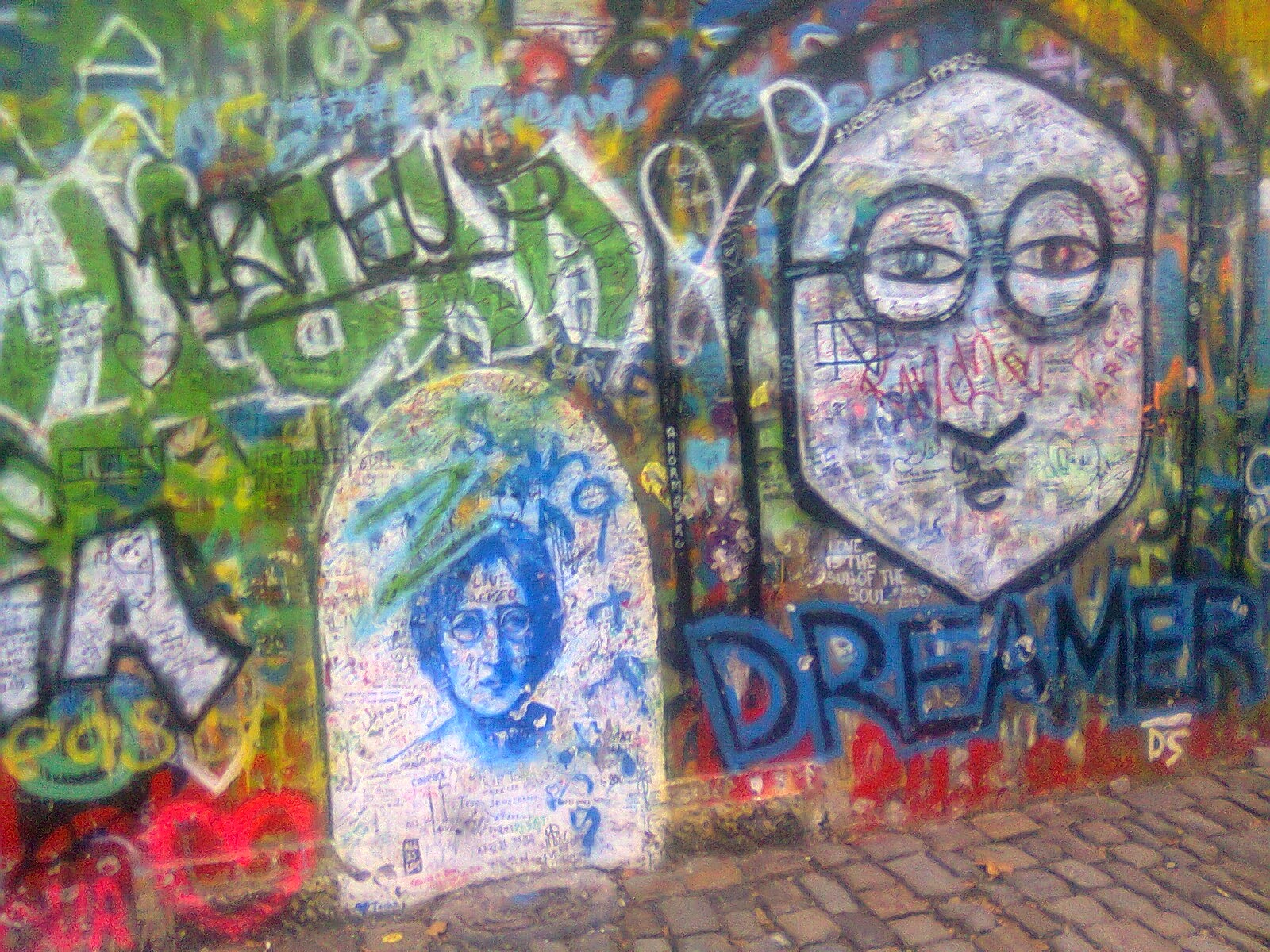Kolejnym z trzech najbardziej istotnych według mnie zabytków jest John Lennon Wall - czyli bardzo popularna dla turystów miejscówka w której na długiej ścianie widzimy różne rzeczy namalowane sprayem, oczywiście powiązanie ściśle z Johnem Lennonem i zespołem The Beatles.