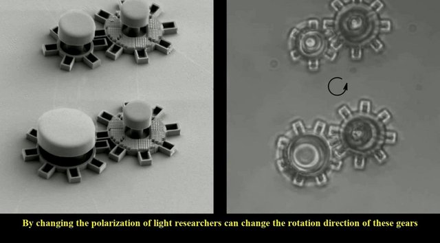 Un equipo internacional especializado en nanotecnología óptica bajo la dirección del físico Gan Wang en la Universidad de Gotemburgo (Suecia), han logrado fabricar micro-motores ópticos más pequeños que un cabello humano capaces de moverse, girar y transmitir fuerza únicamente usando luz láser. Estos dispositivos están compuestos por engranajes de silicio integrados en un chip, recubiertos con meta-superficies ópticas: estructuras nano-métricas que manipulan la luz a través de patrones microscópicos capaces de desviar, reflejar o refractar el haz láser.