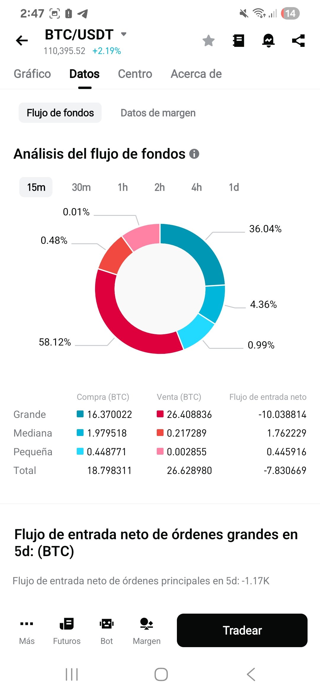 En estos momentos el bitcoin se encuentra a unos 110, 404 USDT.