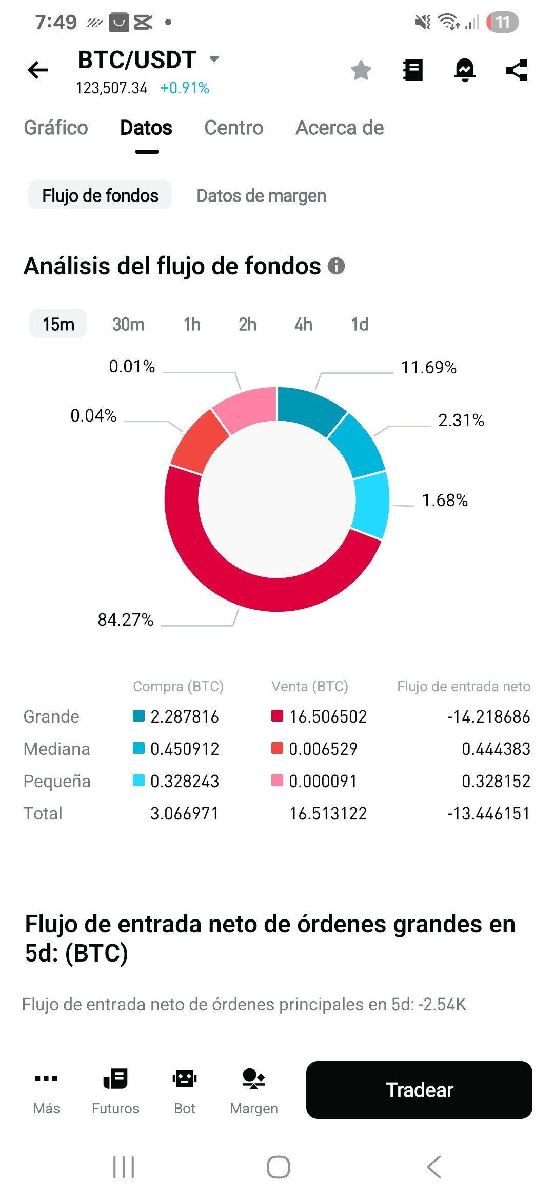 En estos momentos el bitcoin se encuentra a unos 123, 510 USDT.