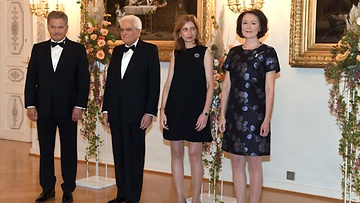 In this picture we have the finnish President Sauli Niinisto with his pregnant wife. With them are posing Italian president Sergio Mattarella with his daughter Laura Mattarella.