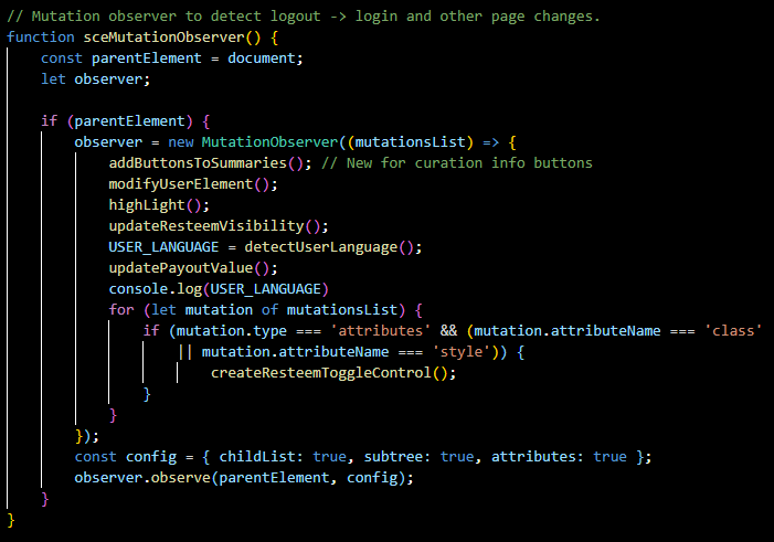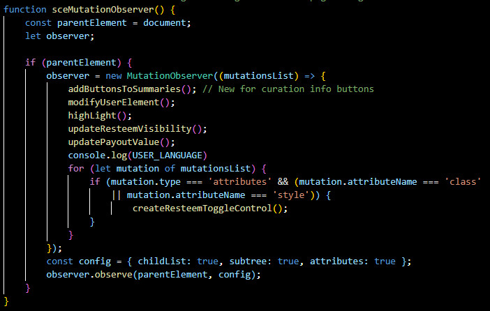 In order to make our code work on posts that aren’t displayed on the initial load, we have to add the function to the mutation observer that already exists for other features in the browser extension: