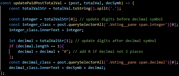 First, we will update the value displayed as the post’s total payout value. We can do this using the Voting__pane