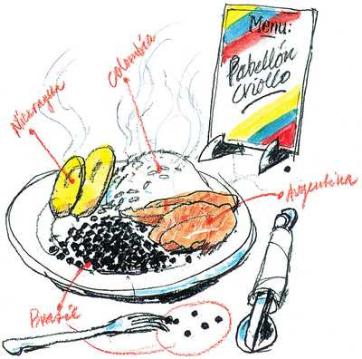 El llamado pabellón venezolano se ofrece en múltiples presentaciones y cantidades. En Costa Rica se le llama a este plato “gallo pinto” (por cierto, en el diccionario de costarriqueñismos de Carlos Gagini de 1919 no figura esta palabra, lo que pudiera significar que la denominación “gallo pinto” debe ser más actual) y es desayuno típico y tradicional de los ticos. En Cuba son los Moros y Cristianos y en Venezuela el Pabellón.