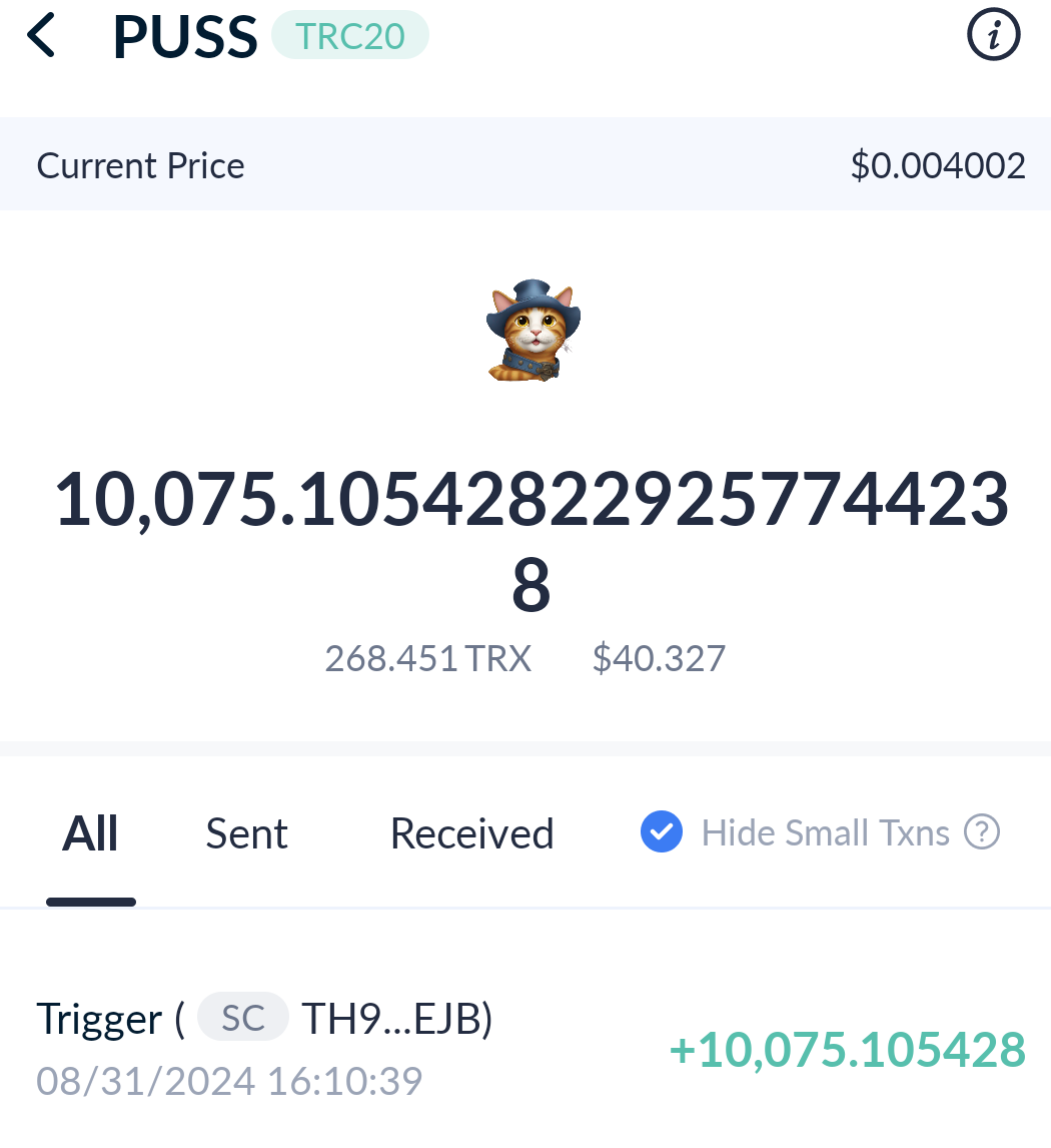 PUSS is steadily moving and has the potential to top the memecoin space in the long run. As such, I have no thoughts of selling a piece, but I would rather buy more. Hopefully, we can make it to list on one of the centralized exchanges sooner, I know listing on a few ones can be easy with the right listing funds and that will mark another great phase for PUSS. The contract address of PUSS is TX5eXdf8458bZ77fk8xdvUgiQmC3L93iv7, you don't want to miss out.