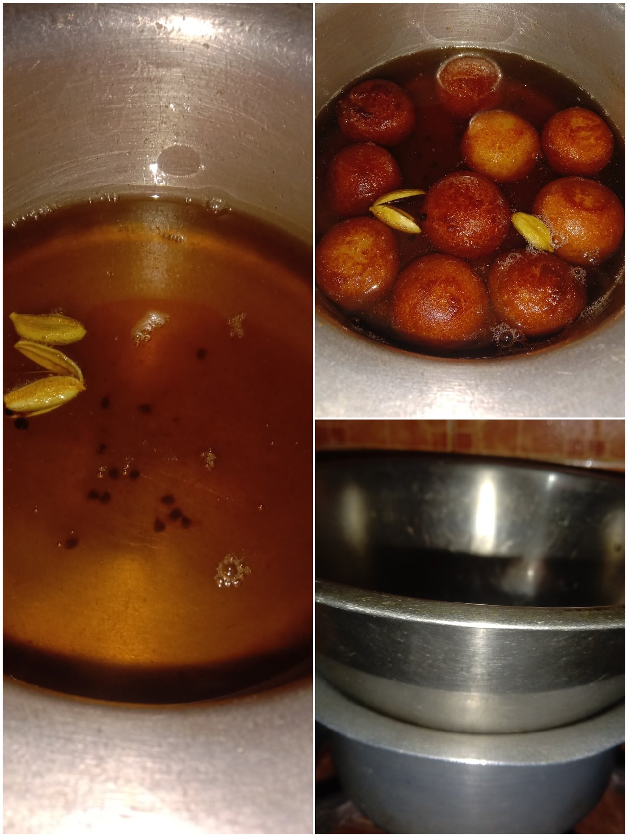 এবার একটা পাত্রে এক কাপ পরিমাণ জল দিয়ে তারমধ্যে পরিমাণ মতো চিনি, সাদা এলাচ দিয়ে বেশ কিছুক্ষণ ধরে ফুটিয়ে একটা সিরা তৈরি করে নিয়েছি।