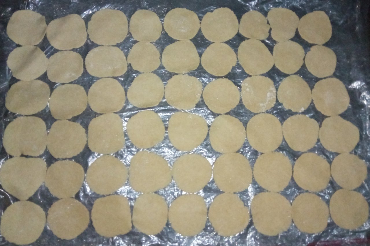 এবারে ছোট ও গোল গোল করে বেলে নেব লেচিগুলো।তারপর একটি প্লাস্টিক পেপার বিছিয়ে তার উপরে বেলে নেওয়া ফুচকাগুলি সাজিয়ে রাখবো।