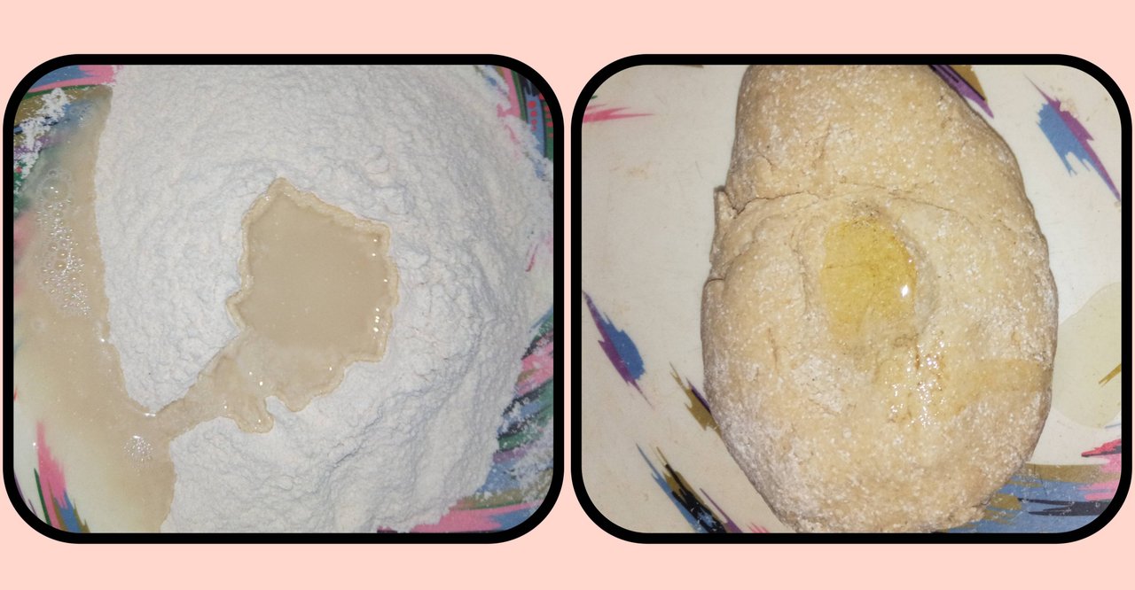 প্রথমে আমি পরিমাণ মতো আটা, সুজি ও সামান্য লবণ নিয়ে নিলাম।তারপর সব একত্রে মিশিয়ে নিলাম।