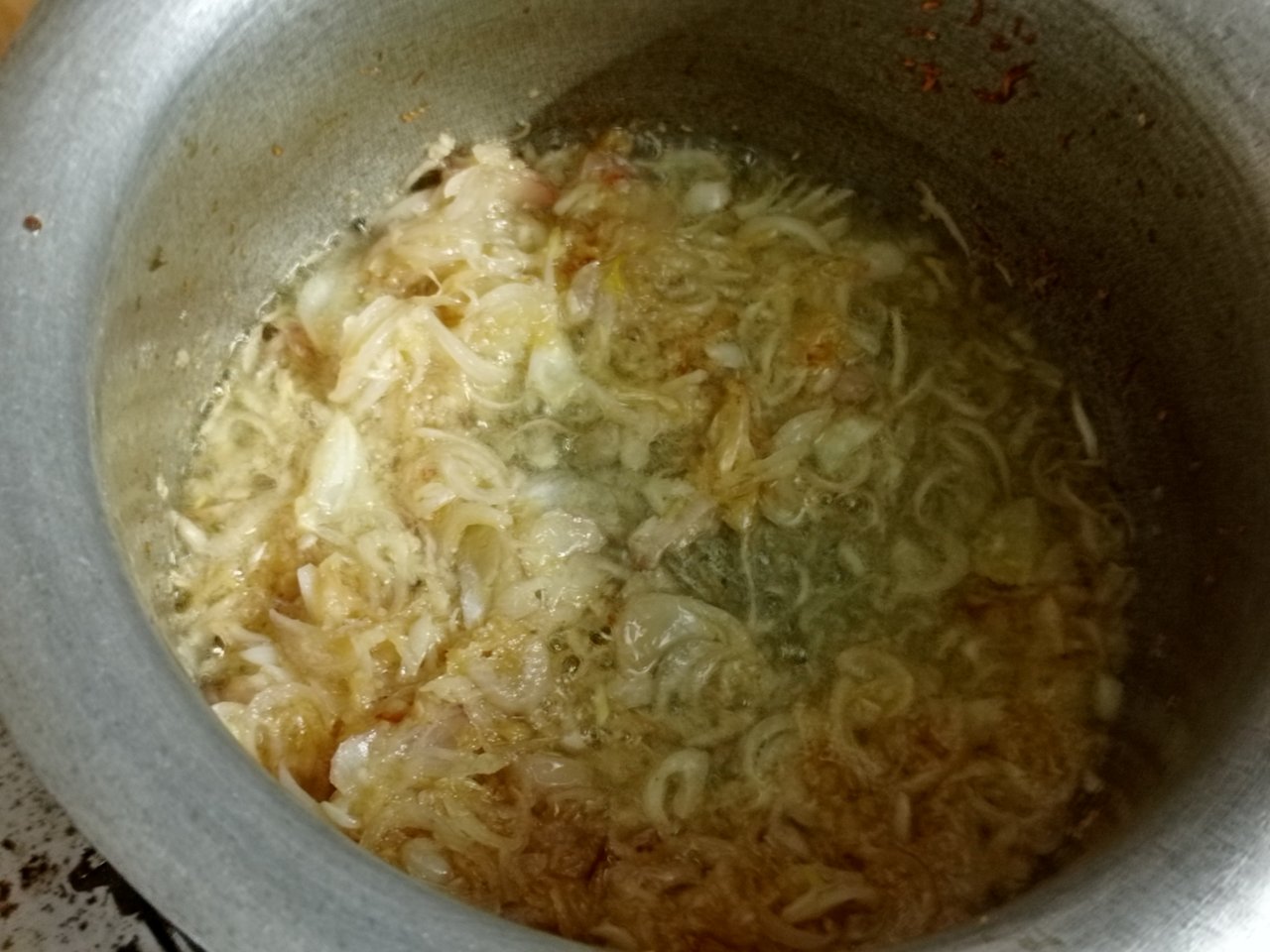 এর পর ছোট একটি পাত্রে তেল দিয়ে বাকি উপকরণ গুলো ভেজে নিলাম। এখানে আমি বেশি না,হালকা করে ভেজে নিলাম।