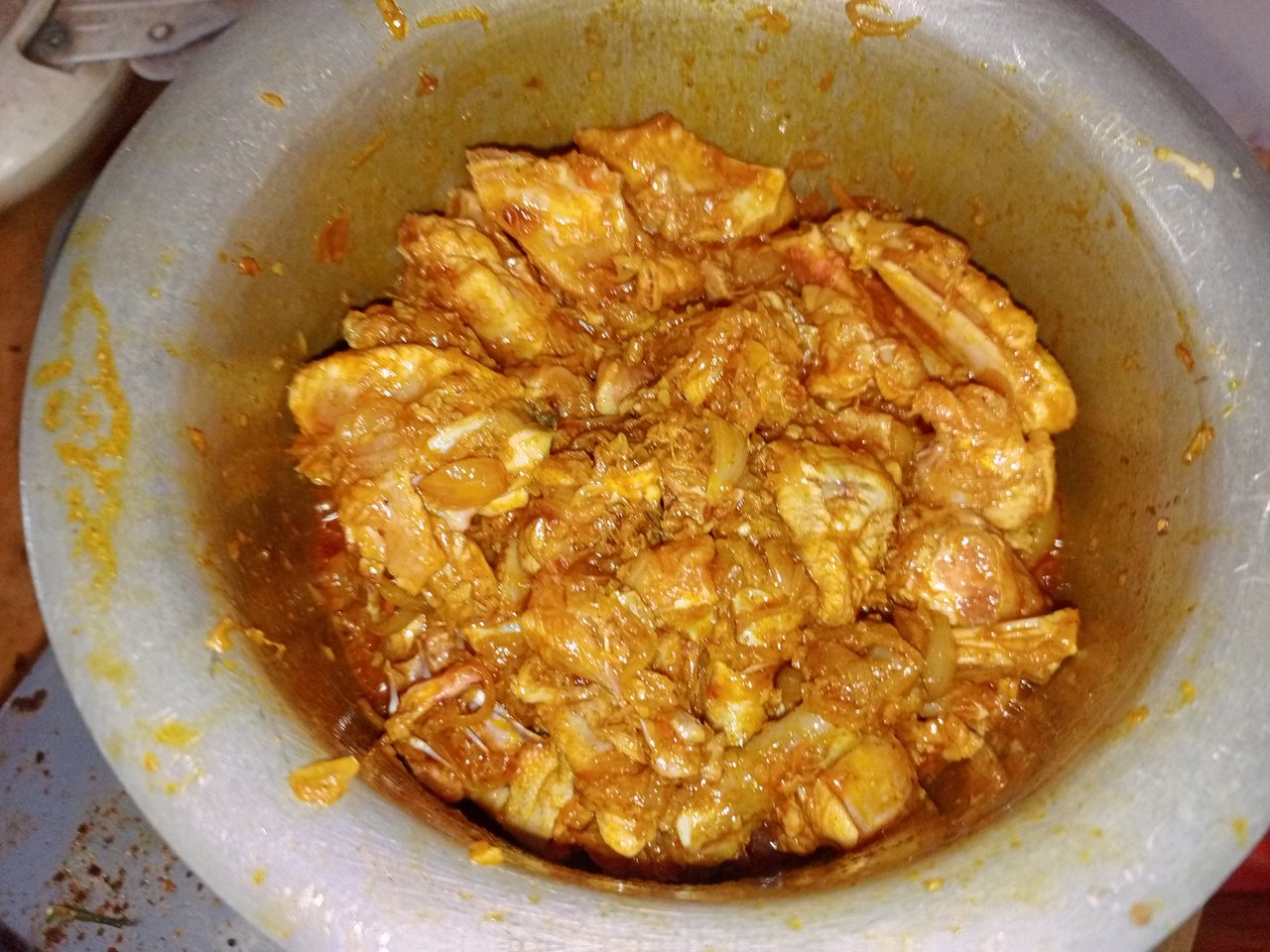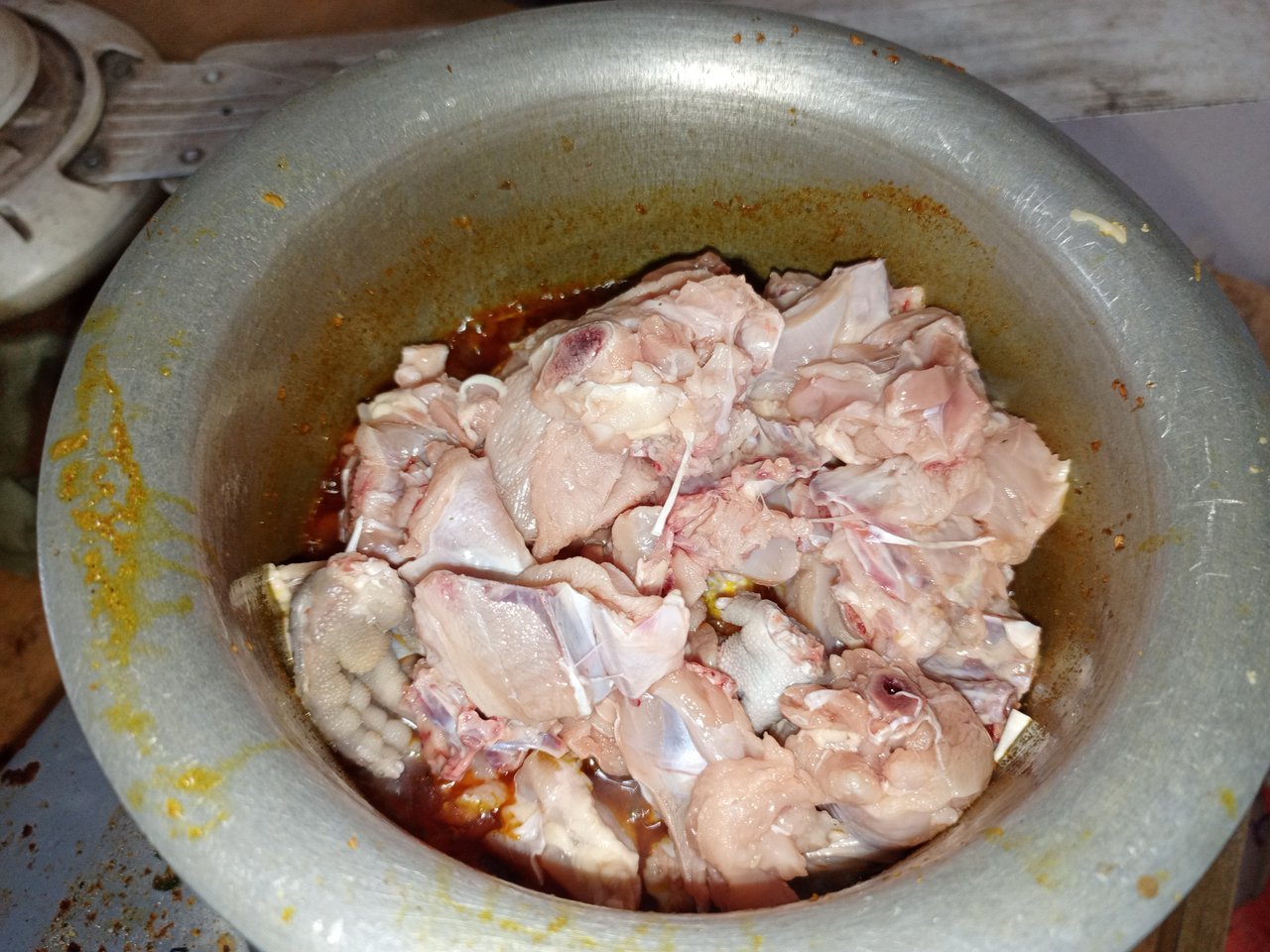 প্রথমে আমি মুরগির মাংস গুলো সুন্দর করে পরিষ্কার করে একটা পাত্রে রেখে দিলাম।