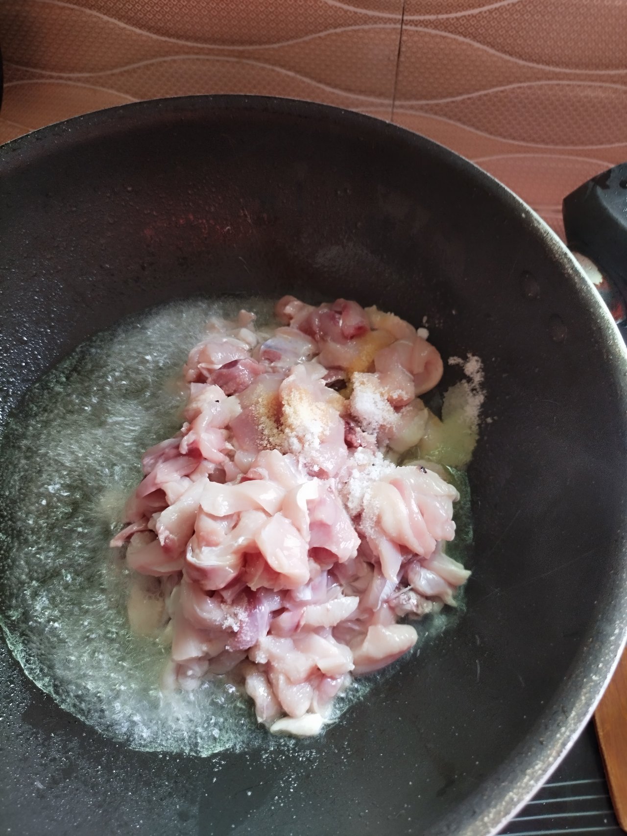 চিকেনগুলো সামান্য লবন দিয়ে কষিয়ে নিব।