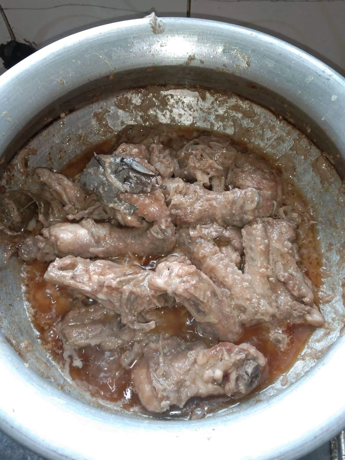 মুরগির মাংস গুলো ভাজি করার জন্য পরিষ্কার করে রেডি করে নিলাম। সবগুলো মাংস ভালো করে তেলে ভেজে আলাদা একটা পাত্রে রেখে দিলাম।