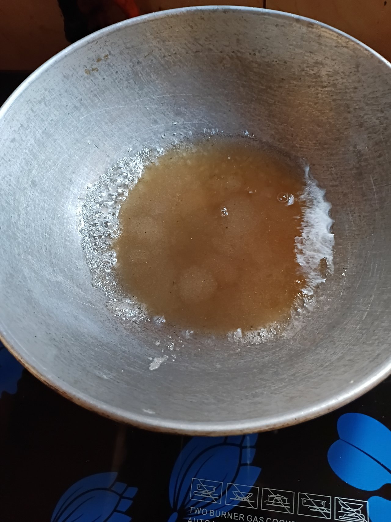 এরপর আমি প্যানে চিনি দিয়ে সামান্য পানি দিয়ে দিয়েছিলাম।