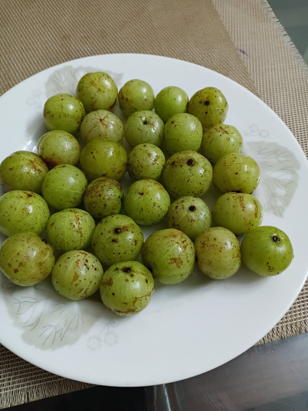বন্ধুরা,আজ আবার হাজির হয়েছি নতুন একটি পোস্ট নিয়ে।আজ শেয়ার করে নেবো একটি রেসিপি পোস্ট। আজকের রেসিপিটি হলো "আমলকির মোরব্বা"।আমলকি খুবই উপকারী।আমাদের শরীরের জন্য। আমলকি খেতে তেতো হলেও খাওয়ার পর পানি খেলে মিষ্টি লাগে।এই তেতো ভাবের কারনে অনেকেই আমলকি কিন্তু খেতে চায় না।আমিতো দিনে এক থেকে দুটো আমলকি এমনিতেই খেয়ে নেই।তবে বাচ্চারা আমলকি খেতে চায় না।তাই বাচ্চাদের জন্য কিছু কিছু খাবার বিশেষ রেসিপি করে খাওয়ানো যেতে পারে।আমিতো তাই ই করি।ছেলের জন্য করা আমার আজকের এই রেসিপিটি।আমলকি মুখের রুচি আনতে সক্ষম।আর এর গুনাগুন ও অনেক।আর এ কারনেই আমলকি যেকোনো ভাবে খাওয়া যেতে পারে।তাই চেষ্টা করেছি আমলকির মোরব্বা করে ছেলেকে খাওয়াতে।আমলকির মোরব্বা তৈরি হওয়ার পর এটা খেতে যেনো রসগোল্লার মতো লেগেছে।আসুন বন্ধুরা,দারুন সুস্বাদু এই রেসিপিটি আজ আপনাদের মাঝে শেয়ার করে নেই।সময় সুযোগ মতো আপনারা ও বাসায় তৈরি করে নিতে পারবেন।রেসিপিটি তৈরি করে নেয়ার আগে আসুন দেখে নেই এই রেসিপিটি তৈরি করতে আমার কি কি উপকরণ লেগেছিল -----