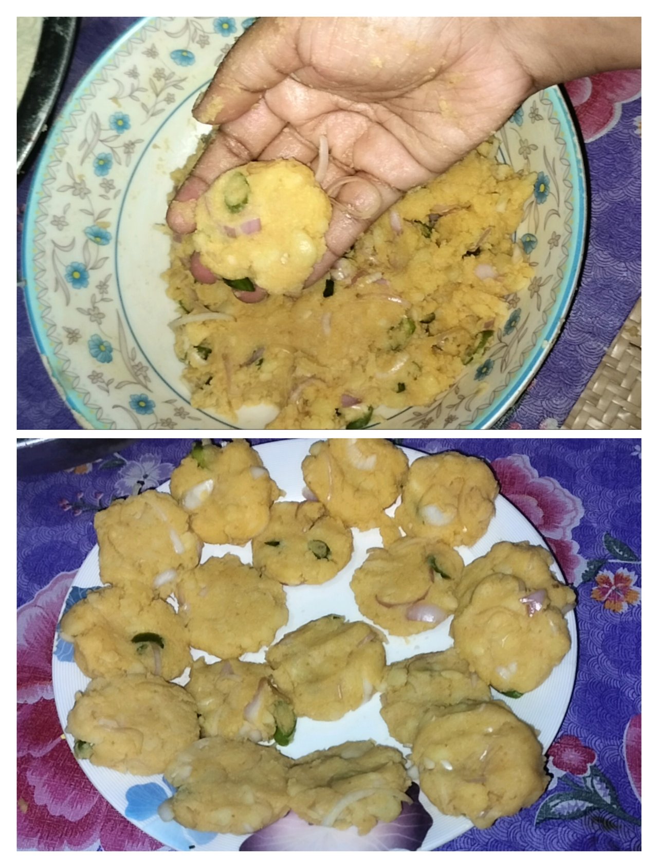 এরপরে এই মিশ্রণ থেকে কিছুটা পরিমাণে নিয়ে গোল করে নিলাম হাত দিয়ে। এভাবে আমি প্রায় অনেকগুলো তৈরি করে নিলাম।