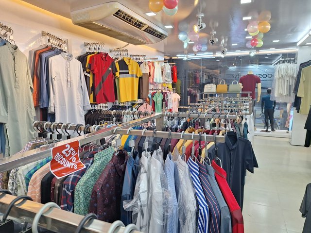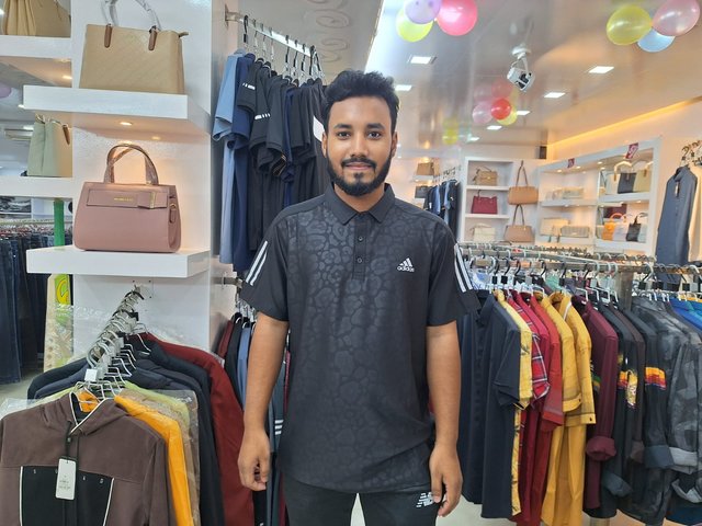 They have a collection of T-shirts and polo T-shirts here, Hughes. Taukir liked a jersey here, although we were only here to see their collection today. Taukir tried it on and it turned out to be a size bigger. There is a 10% discount on it. Although I am eager to buy many things after seeing their collection, I am not buying them due to lack of money. They have a lot of Punjabis here.