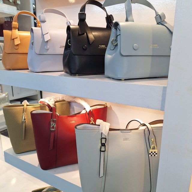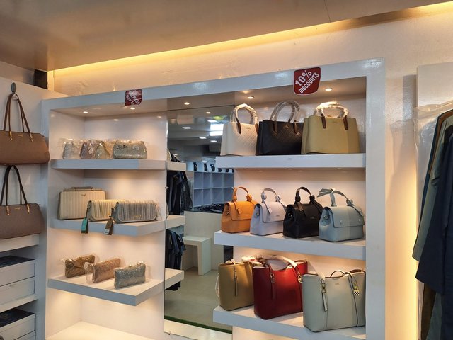 There is a large collection of handbags for women here, which are of different prices. These bags are not made of original leather, but artificial. I took pictures of these bags with their permission. A salesman is telling me some information about these bags, why these bags are so expensive and about their benefits.