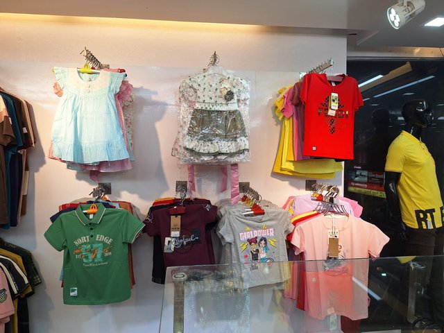 They have some collections of baby clothes here. They have shirts and pants for baby boys and tops for baby girls, cotton collections. I saw these.