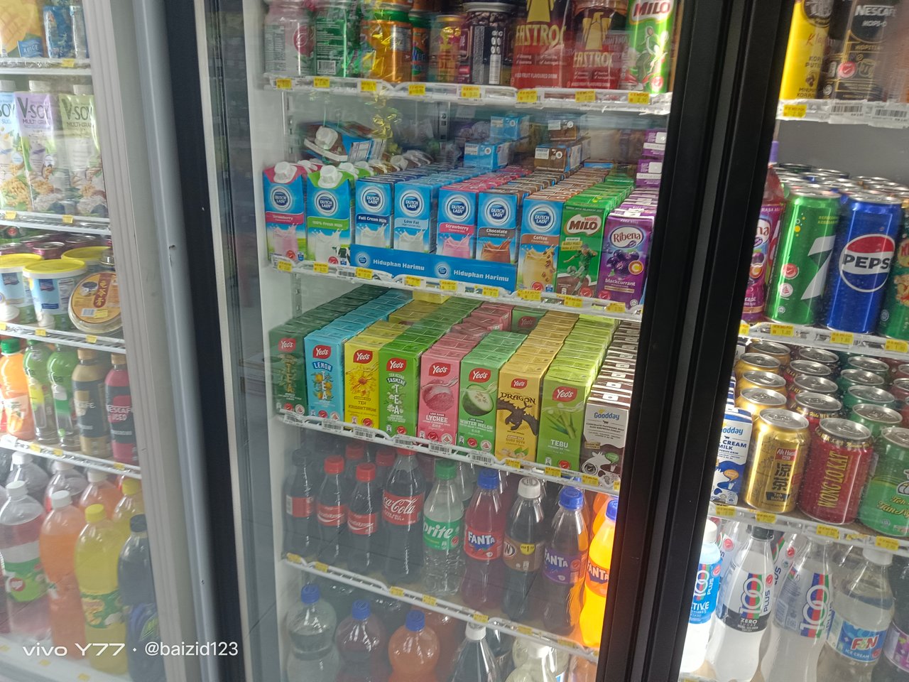Then I went to the store's fridge and there were various types of cold drinks and juices and even before opening the fridge, I could see through the glass door how many types of drinks were kept and Coca Cola Sprite Pepsi Fanta were there and there were juices of brands like Milo Ribena Yes, small tetra packs suitable for children and large bottles for families. On one side of the fridge were colorful energy drinks that looked like they must be quite popular with the youth, and while walking around the store, I noticed that there were not only food or drinks but also many other daily necessities, and everything from sugar, rice, biscuits, cookies, spices, to toilet paper and detergent was available. In short, although the store is small, it is very much like a supermarket.