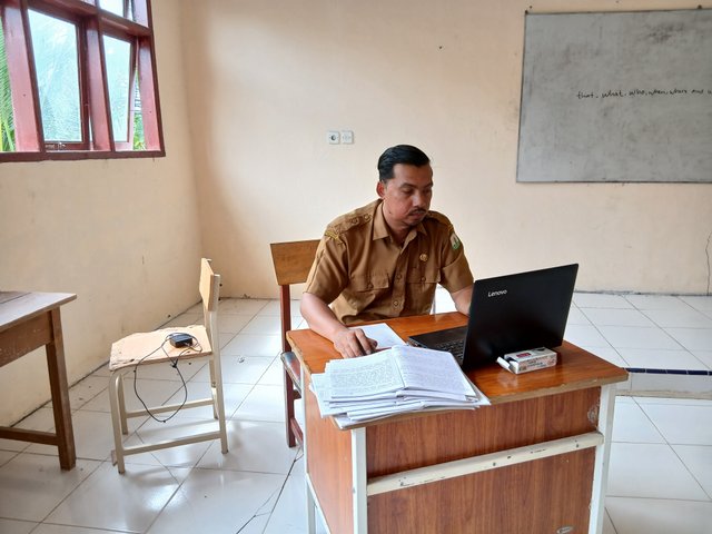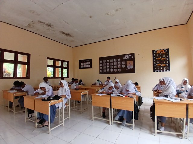 When I arrived to teach class XI-1, I gave a test on memorizing the names of elements based on their groups in the periodic table. There are eight groups in the periodic table of chemical elements. The students came forward one by one when they were ready. After almost all of the students had come forward, I checked again to see if there were any students who had not come forward, because they would not receive a score.