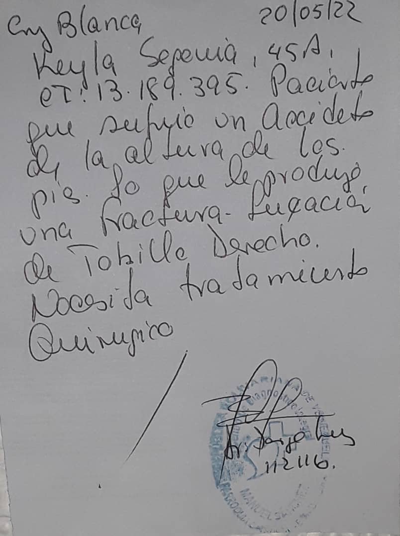 Desde nuestra comunidad queremos hacernos eco de las necesidad de una Steemian que actualmente esta pasando por una situación difícil, @keydoce se cayo golpeándose con una piedra, esto le origino dos fracturas y una fisura en su tobillo. Debido a esto procura urgente una operación, donde le estarán colocando una placa con tornillos.