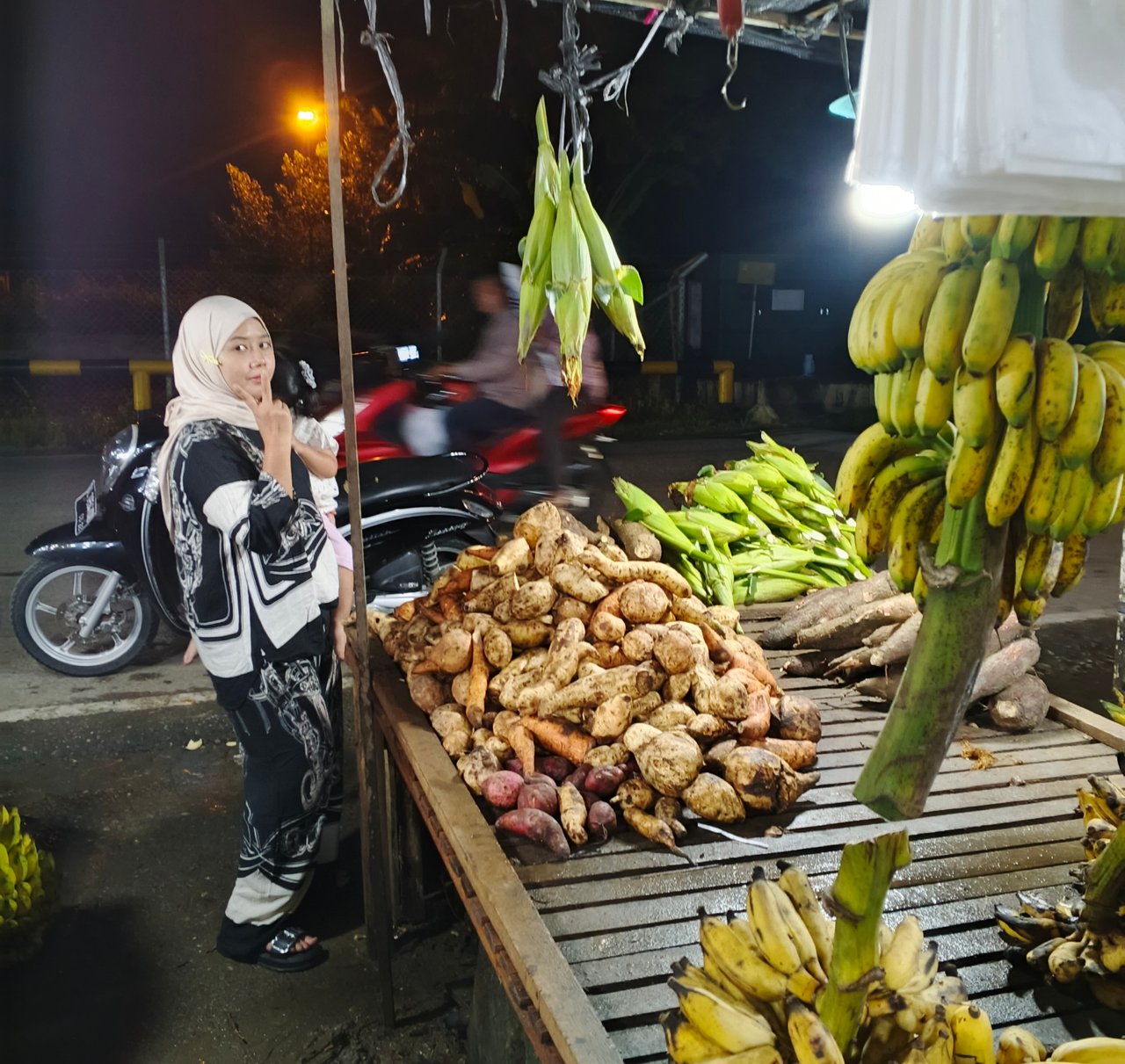 Selesai itu saya gantian sama mertua menjaga kedai karena saya dan suami ingin belanja ke pasar membeli bahan untuk esok pagi, membeli pisang, dan ubi jalar beserta bahan yang lainnya yang sudah habis.