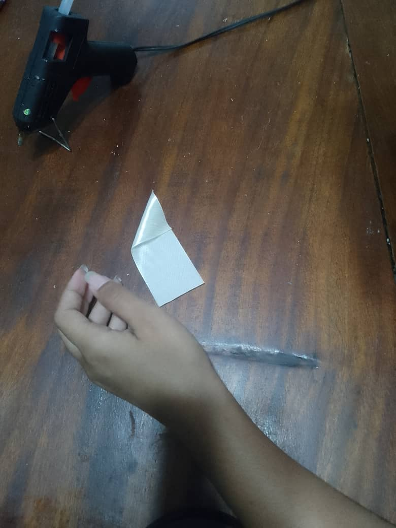 Se recorta la cinta de 10 cm de largo y su ancho es 4 cm, recorte varias de ellas.