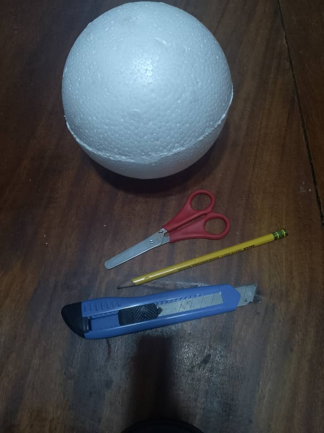 Se procede a pegar la base a la media bola de anime, que antes fue cortada la bola de anime con el exacto, también se debe después forrar con cinta.