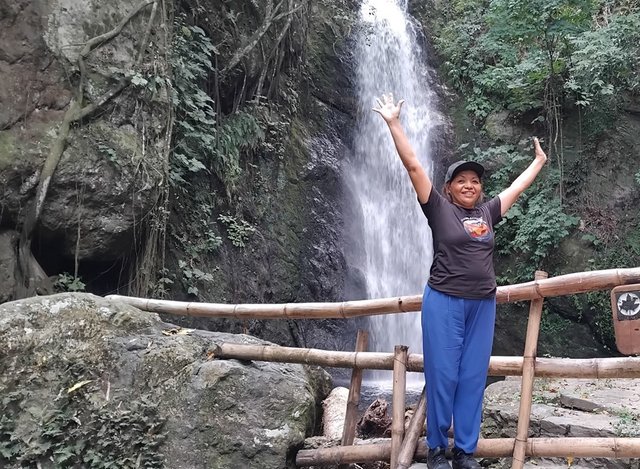 Me tomé una foto cerca de la cascada, es impresionante con la fuerza que baja la corriente de agua.