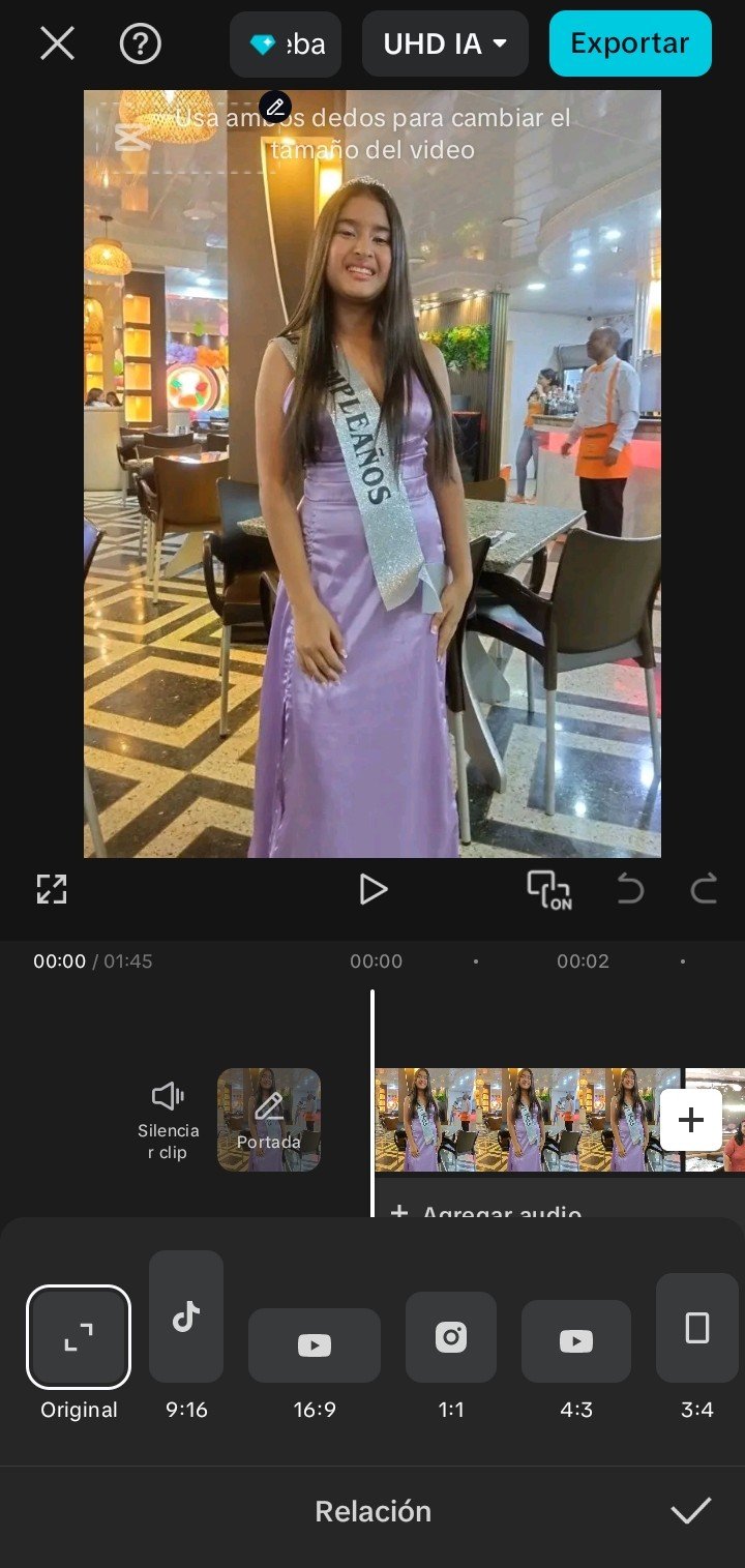 Después de tener las imágenes y video listos, continúe con la edición. Hice clic en relación de aspecto, para ajustar a 16:9.