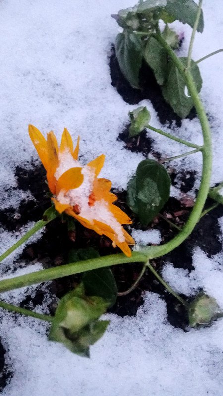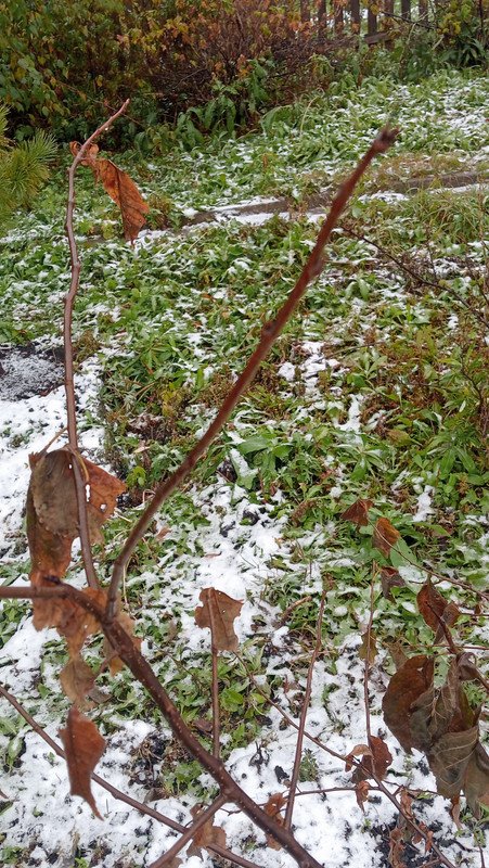 Зима ? 4.10.2025steemCreated with Sketch.victor999 (59)in #rusteem • 10 days ago Всем привет . Выпал снег . Даже цветы в снегу . Тут. Есть почки. Думаю прижились сливы . Весной пощупаем ))) Погода не очень весть день то дождь и снег идёт. #history #ru #steemit #photography