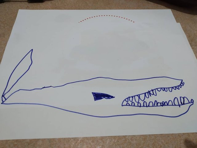"Huiiiiik, Faza gambar monster!" takjubku saat melihat gambar pertama. Waktu itu masih belum ditambahkan sirip belakang. . . . "Bukan Bunda! Ini ikan Paus Biru!" ujar Faza terlihat kesal.