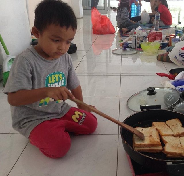Makan siang awak, sediakan sendirilah...puh puh puh...cek apinya nyala atau nggak. Mau puasa pun awak belum diwajibkan. Masak sandwich dulu untuk pengganjal perut siang ini. . . .